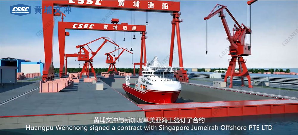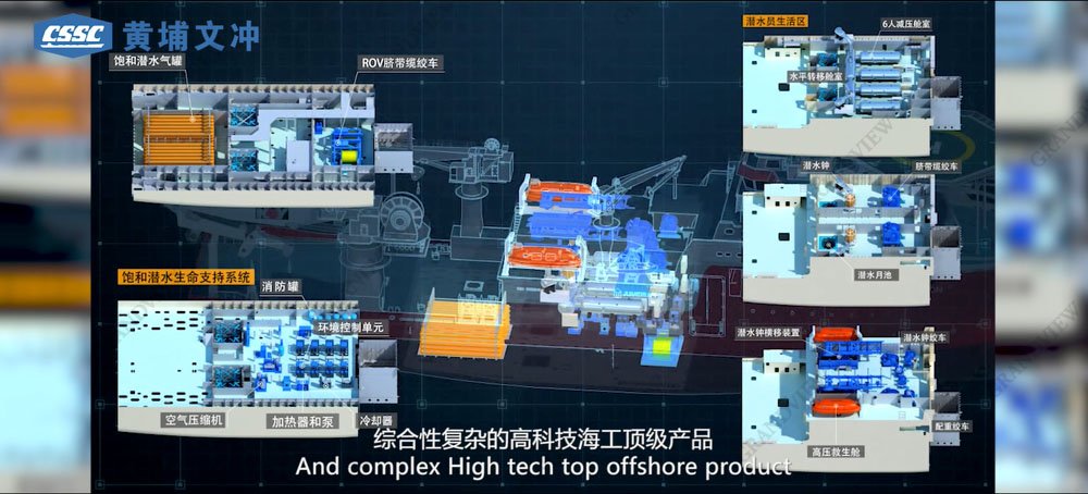 這是廣角品牌機(jī)構(gòu)為黃埔文沖所制,中國第一艘自主建造的飽和潛水支持船的宣傳片片頭。黃埔文沖,位于世界五百強(qiáng)企業(yè)之中船陣列,是中國疏浚工程船和支線集裝箱船最大最強(qiáng)生產(chǎn)基地,能為其制作宣傳片,廣角與有榮焉。